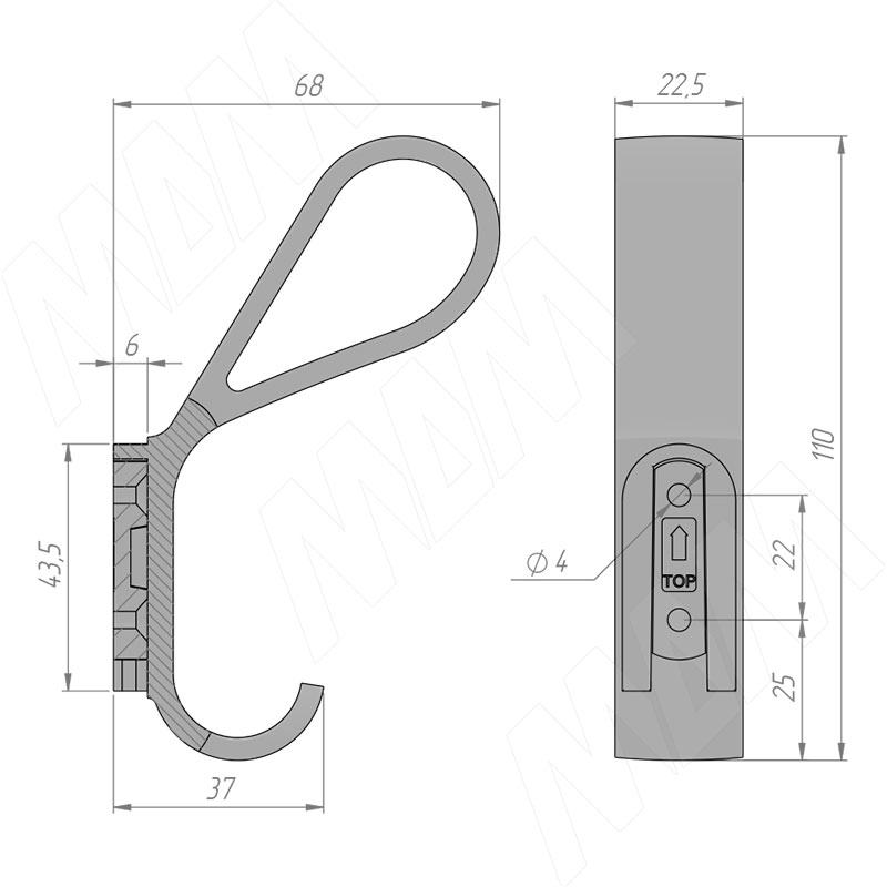 Размеры двухрожкового крючка (HK.43)Установка двухрожкового крючка (HK.43)