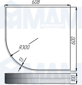Радиусный элемент цоколя внешний (высота 100), алюминий "Pimiller"