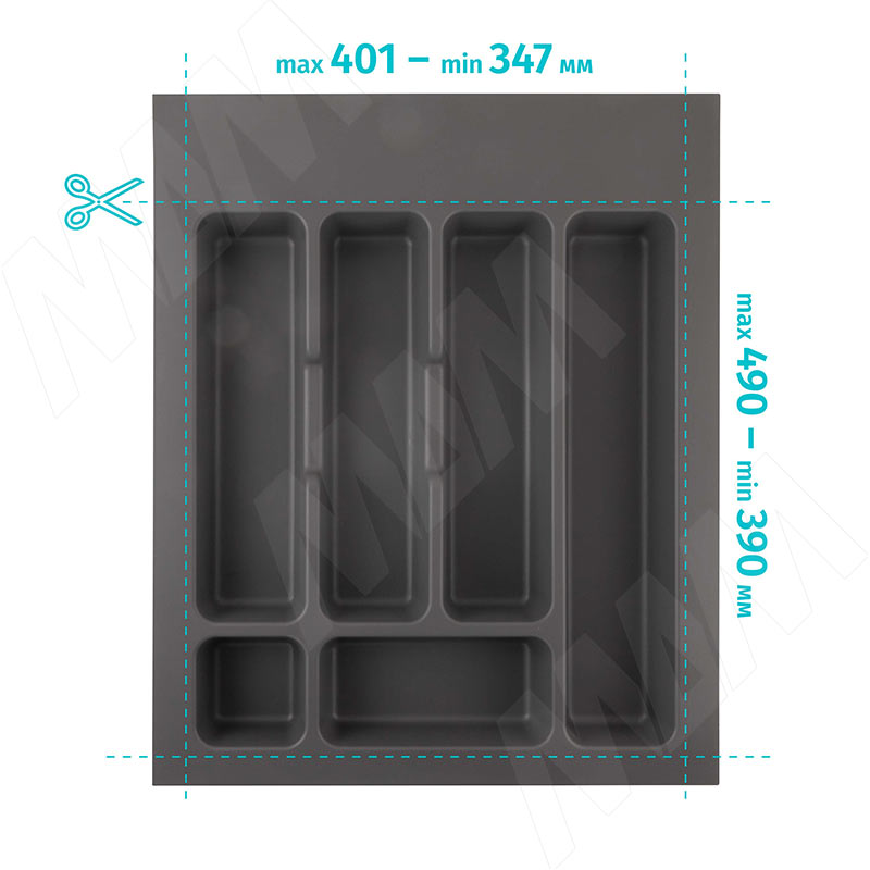 CLASSICA Лоток кухонный для столовых приборов для ящика c фасадом 450 мм, цвет орион серый фото товара 2 - 6773G425PZ Изображение товара CLASSICA Лоток кухонный для столовых приборов для ящика c фасадом 450 мм, цвет орион серый ракурс 2 - 6773G425PZ