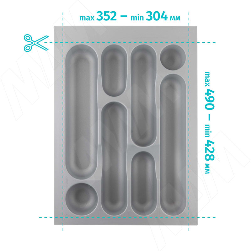 DESIGN Лоток кухонный для столовых приборов для ящика c фасадом 400 мм, цвет серый металлик