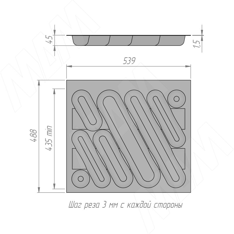• наличие запаса по ширине и глубине позволяет подрезать лоток до нужного размера;