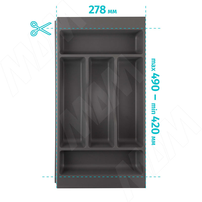 COMBI Лоток кухонный для столовых приборов 278х420/490, цвет графит