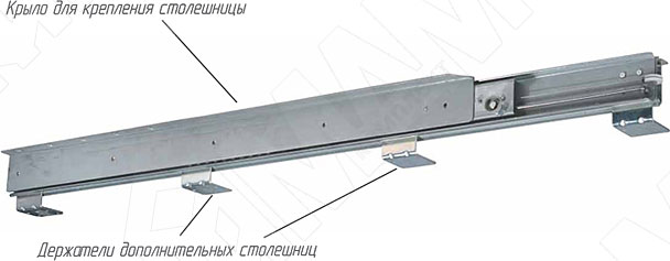 Примечание: длина стола в открытом состоянии зависит от количества дополнительно установленных столешниц