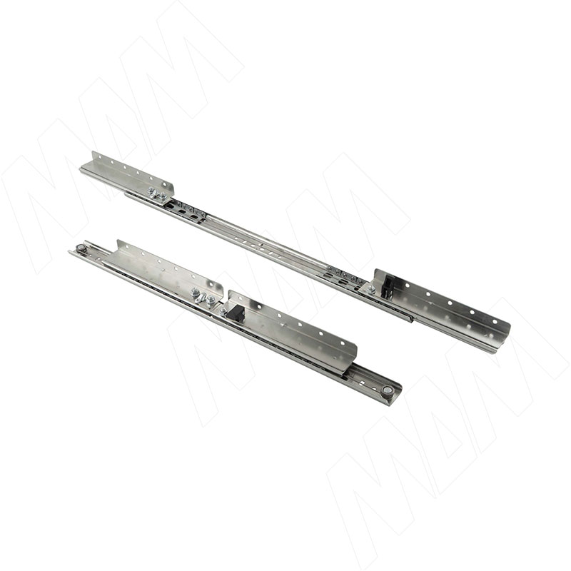 Применение: для создания раздвижного царгового стола. Механизм устанавливается, как правило, с внешней стороны царги и при этом может быть виден. В случае установки внутри царги потребуется дополнительная фрезеровка. При раздвижении основных столешниц каретки с крепёжными площадками выходят за длину царги и за габаритные размеры направляющей механизма.