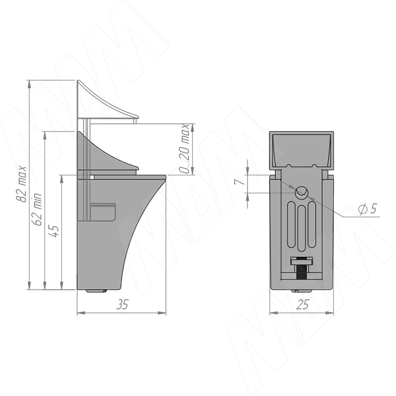 Менсолодержатель для деревянных и стеклянных полок 0-20 мм, белый матовый