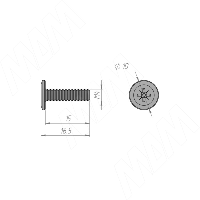 Стяжка межсекционная с плоской головкой "папа", M4 X 15