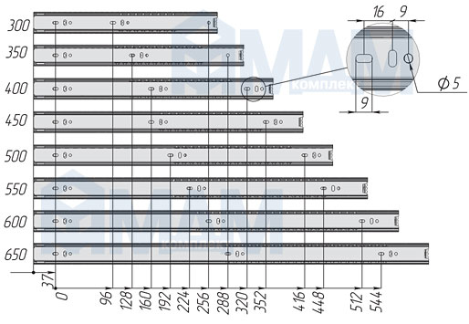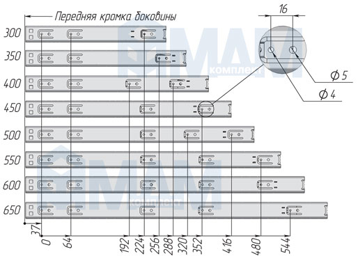 Купить направляющие 300 мм, шариковые, h35 мм, неполн. выдвижения оптом и в розницу в городе Москва.