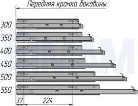 Направляющие 550 мм, ниж. крепления, полн. выдвижения, с толкателем