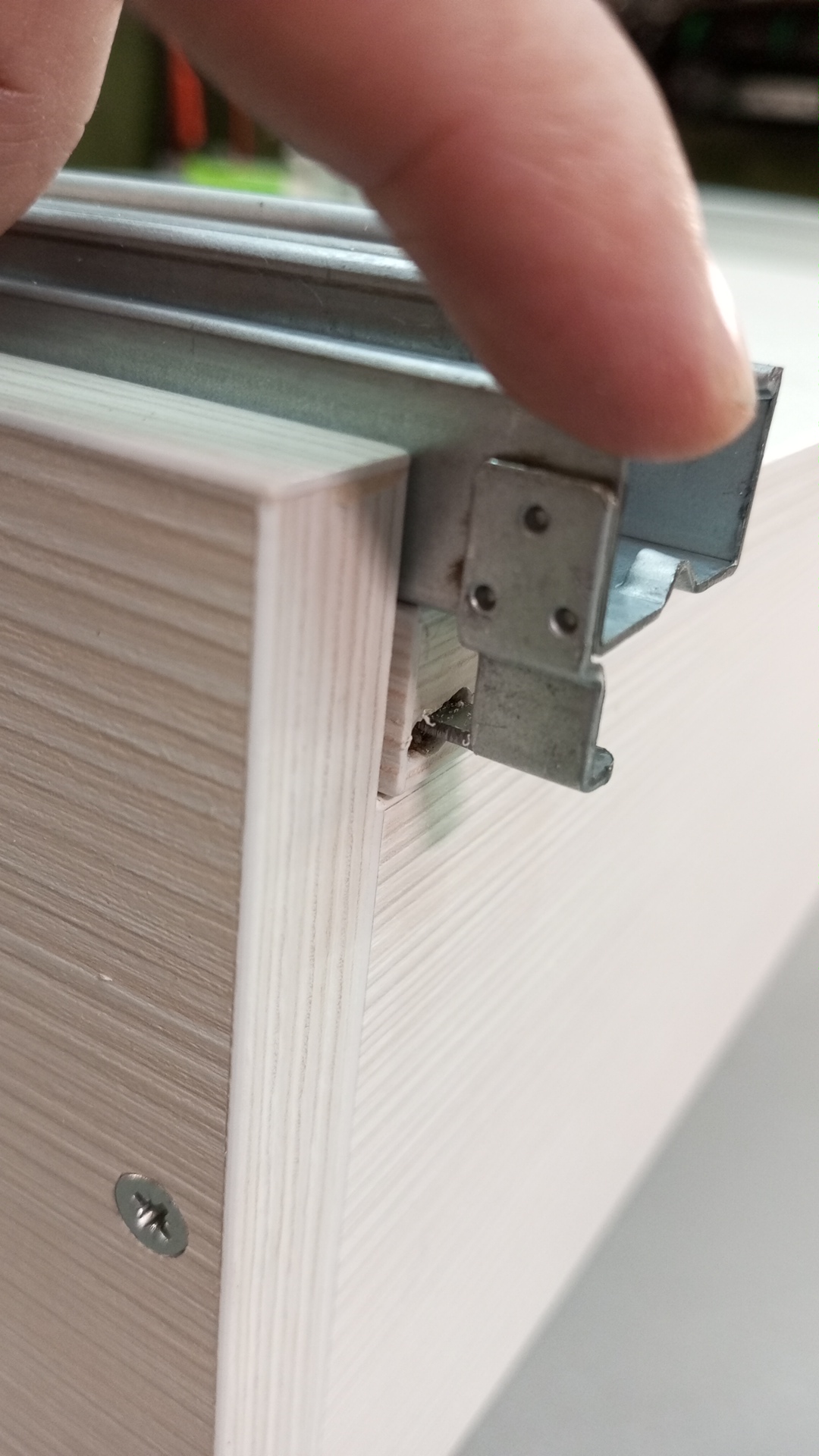 Ещё, не критично, но заметил, гнутые платформы, вдоль гнутые, кривые! Когда саморезы вкручиваешь, они конечно её выпрямляют, прижимают к ЛДСП. Но так не должно быть. Не каждая направляющая гнутая, но попадаются. Кладешь на поверхность, на бок короба, а она ходуном ходит, болтается.