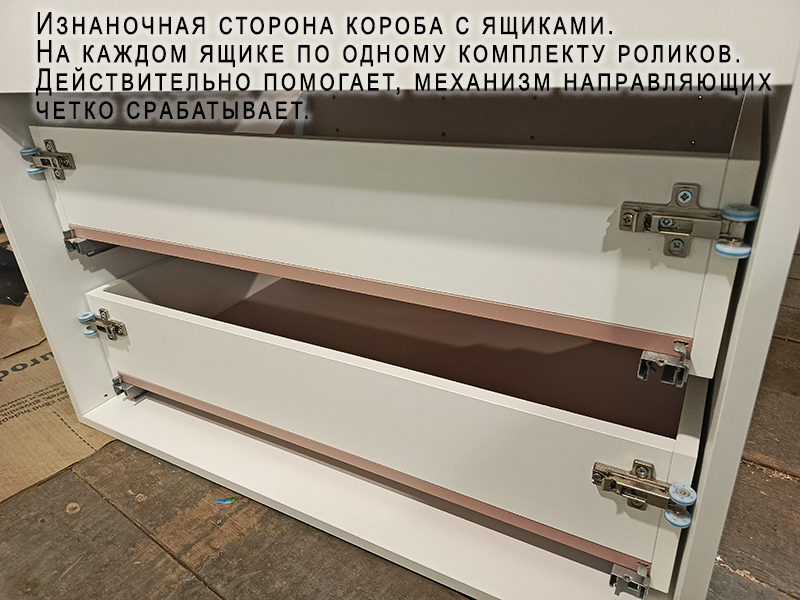 Действительно ролики помогают, широкий ящик открывается от нажатия с любой стороны. Качество роликов хорошее.