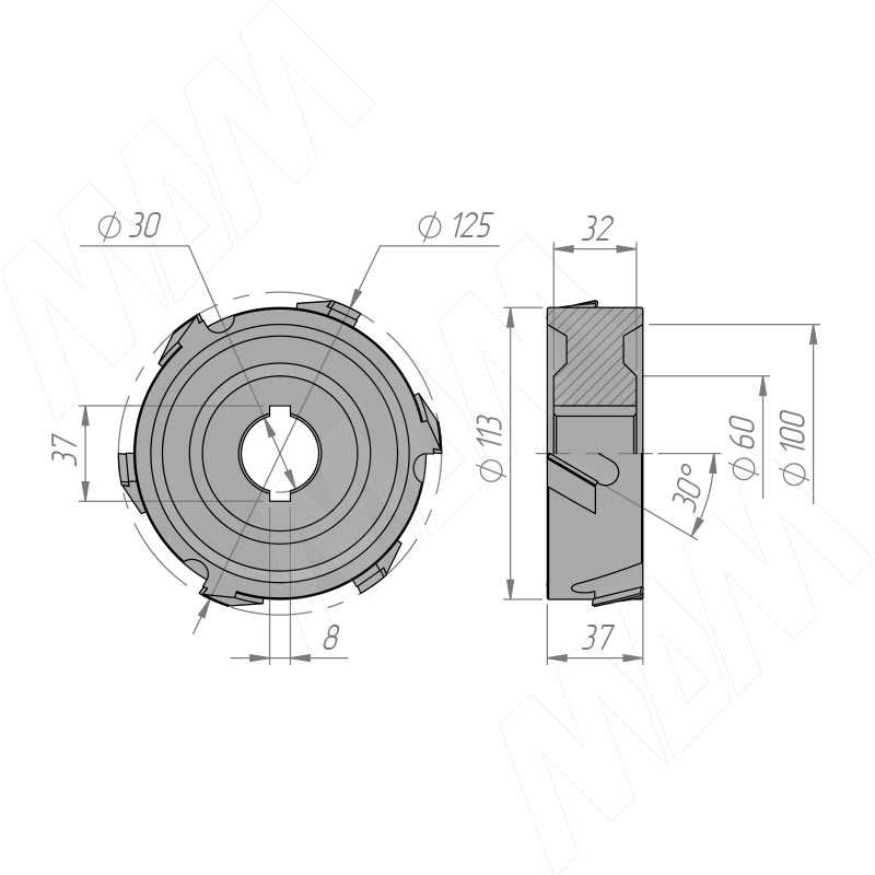 Купить алмазная фуговальная фреза 125x30xh35xz3x2/s (всего 6 ножей) оптом и в розницу в городе Москва.
