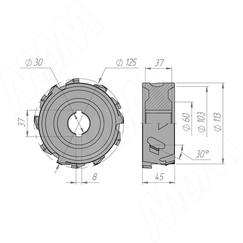 Купить алмазная фуговальная фреза 125х30хh43хz3x4/s (всего 12 ножей) оптом и в розницу в городе Москва.