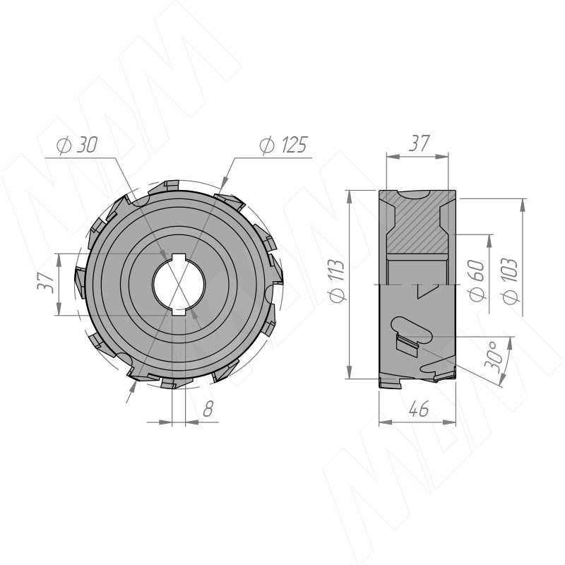 Купить алмазная фуговальная фреза 125х30xh43,6xz3x4/s (всего 12 ножей) оптом и в розницу в городе Москва.