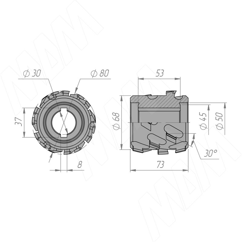 Алмазная фуговальная фреза 80x30xH64,6xZ3x6/AS/RH (всего 18 ножей)