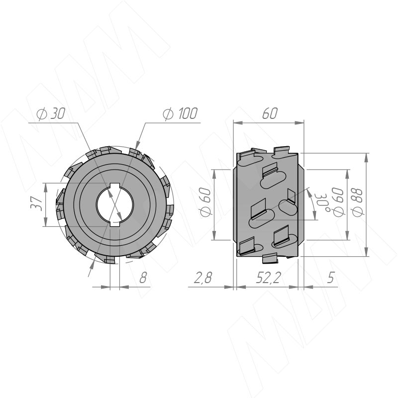 Размеры фрезы алмазной фуговальной 100x30xH45xZ3x5/AS/LH (артикул 6640015039L)