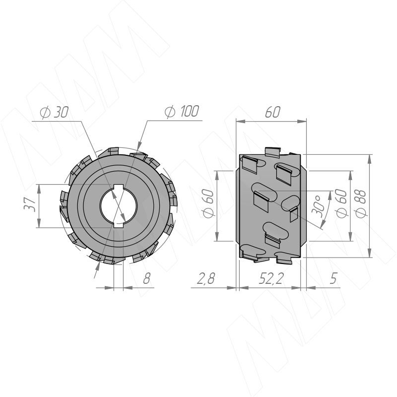 Размеры фрезы алмазной фуговальной 100x30xH45xZ3x5/AS/RH (артикул 6640015039R)