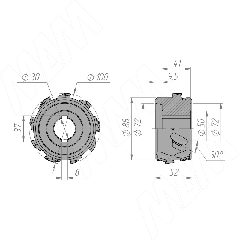 Алмазная фуговальная фреза 100x30xH44xZ3x4/AS/RH (всего 12 ножей)