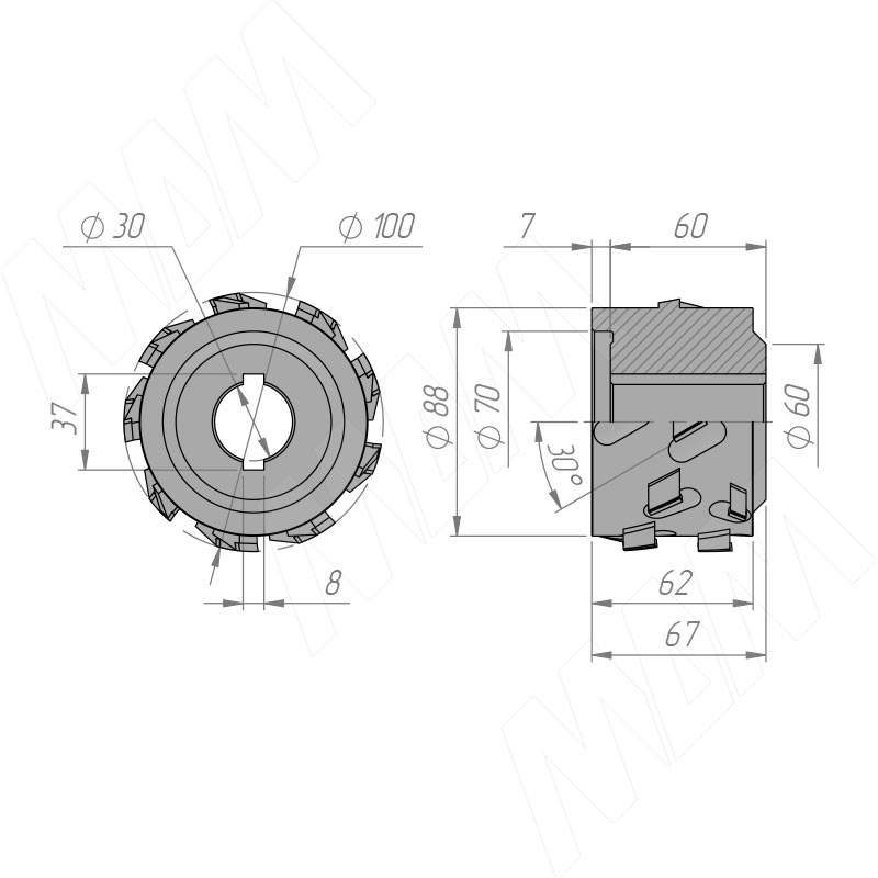 Размеры фрезы алмазной фуговальной 100x30xH55xZ3x6/AS/LH (артикул 6640018040L)