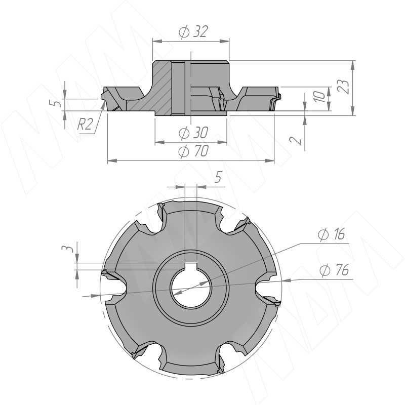 Размеры алмазной фрезы для снятия свесов D76xd16xh8 6Z R2 LH (артикул 66200900018L-R2)