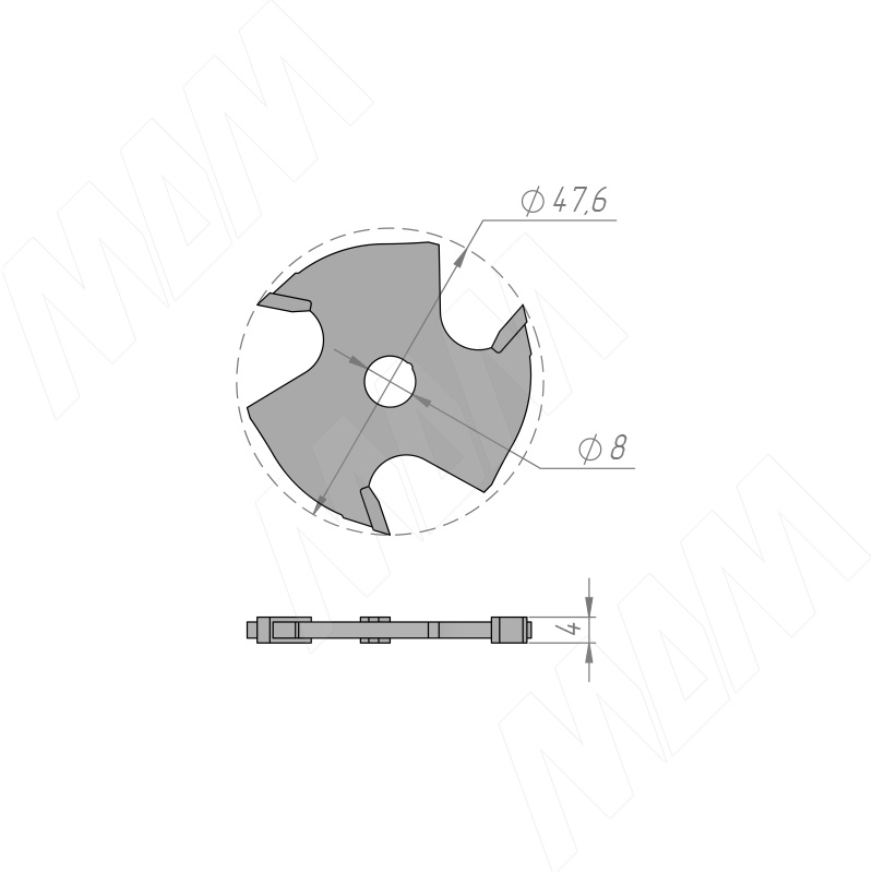 Фреза пазовая дисковая D=47,6 мм, d=7,94 мм, B=4 мм, Z=3