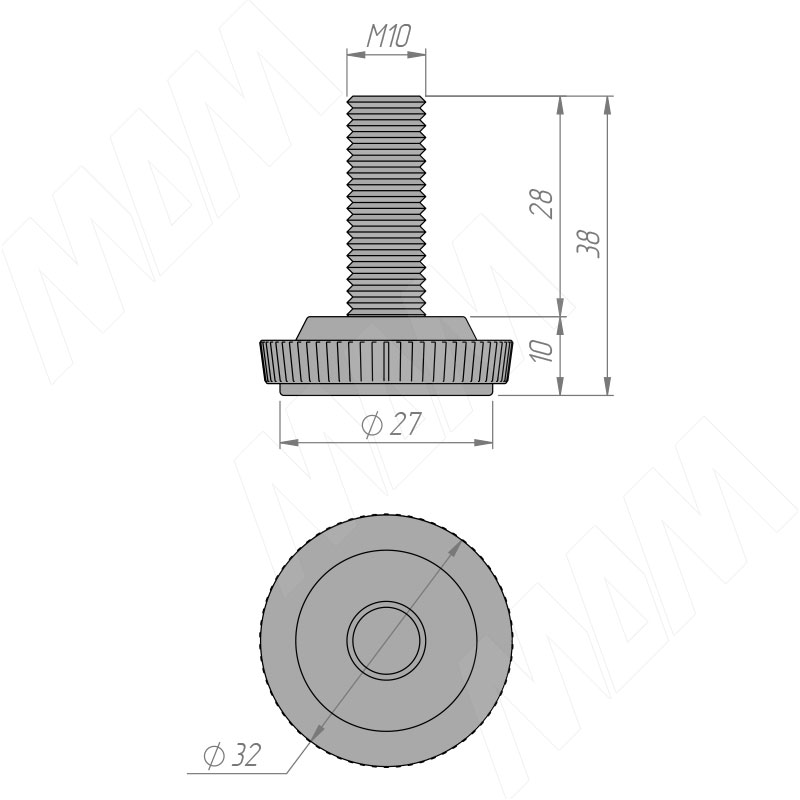 Размеры мебельной ножки М10x30 мм (артикул PI03.M10X30.)