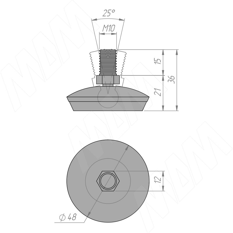Размеры мебельной ножки на подвижном шарнире, М10x15 мм (артикул LEV M10 X 15)Установка мебельной ножки на подвижном шарнире, М10x15 мм (артикул LEV M10 X 15), схема 1Установка мебельной ножки на подвижном шарнире, М10x15 мм (артикул LEV M10 X 15), схема 2