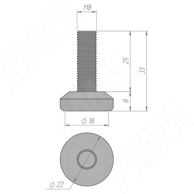 SuperGlide Ножка мебельная круглая D22мм, M8x25 мм