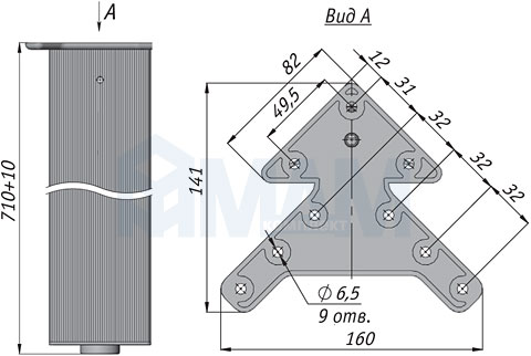Оставьте свой отзыв о товаре: Опора для стола треугольная, H710+10 мм, хром матовый, 4шт. (633.A0.04)