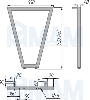 Оставьте свой отзыв о товаре: Опора для стола V-образная, 40х40, H720+5мм, хром вулканический, 1шт. (V40X40/720 CR)