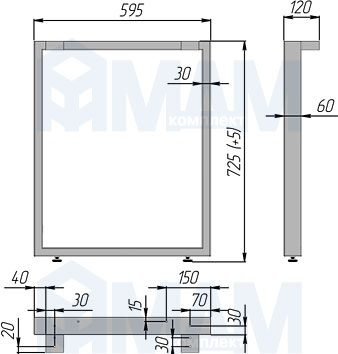 Оставьте свой отзыв о товаре: Опора для стола П-образная, 60х30, H725+5мм, хром матовый, 1шт. (П60X30/720 AL)