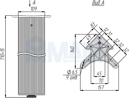 Оставьте свой отзыв о товаре: Опора для стола треугольная, H710+15 мм, хром матовый, 4шт. (705.A0.04)