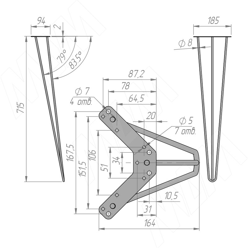 LOFT опора для стола V-образная, 151х715 мм, черный фото товара 3 - LFT151x715 BLC