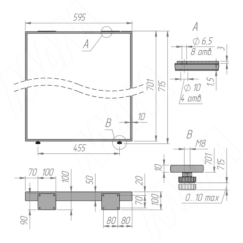 Допустимая нагрузка 80 кг Регулировка по вертикали 10 мм