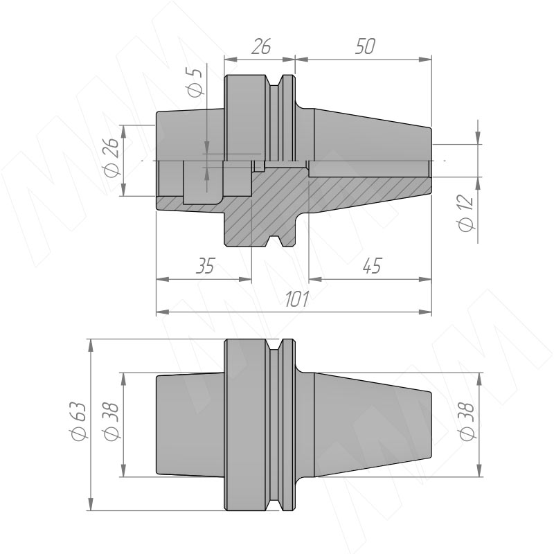 Размеры термопатрона HSK63F D=12 (артикул T120.620.N)