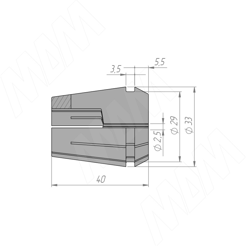 Размеры цанги ER32 D=3-2 мм (артикул T119.030.N)