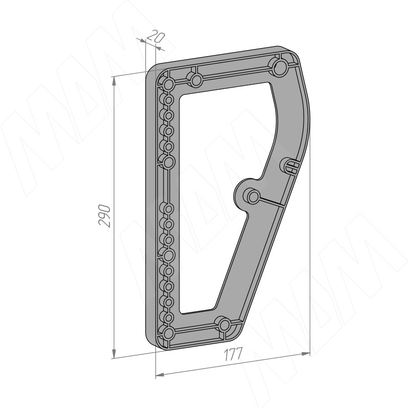 Применение: расширители для пантографов используются для увеличения дистанции между боковиной и подвижной частью механизма, это необходимо в том случае, если неполное раскрытие фасада или установленная фурнитура препятствуют нормальной работе пантографа