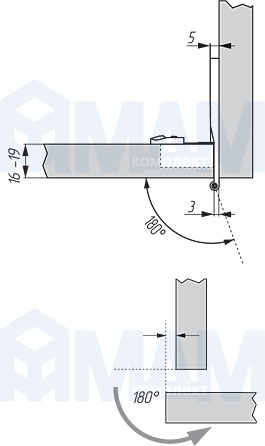 Отверстие в корпусе под плечо петли * =39 мм + толщина двери