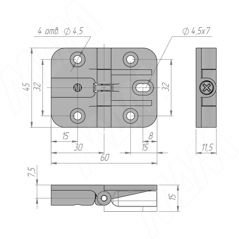 Петля под саморез для откидной створки с фиксатором, хром матовый фото товара 3 - HJ-081200 Изображение товара Петля под саморез для откидной створки с фиксатором, хром матовый ракурс 3 - HJ-081200
