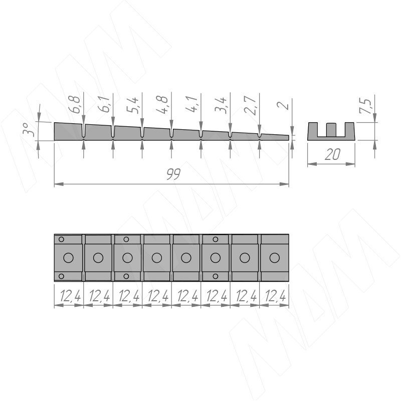 Размеры монтажного клина (артикул SC10PMA)Установка монтажного клина (артикул SC10PMA), схема 1