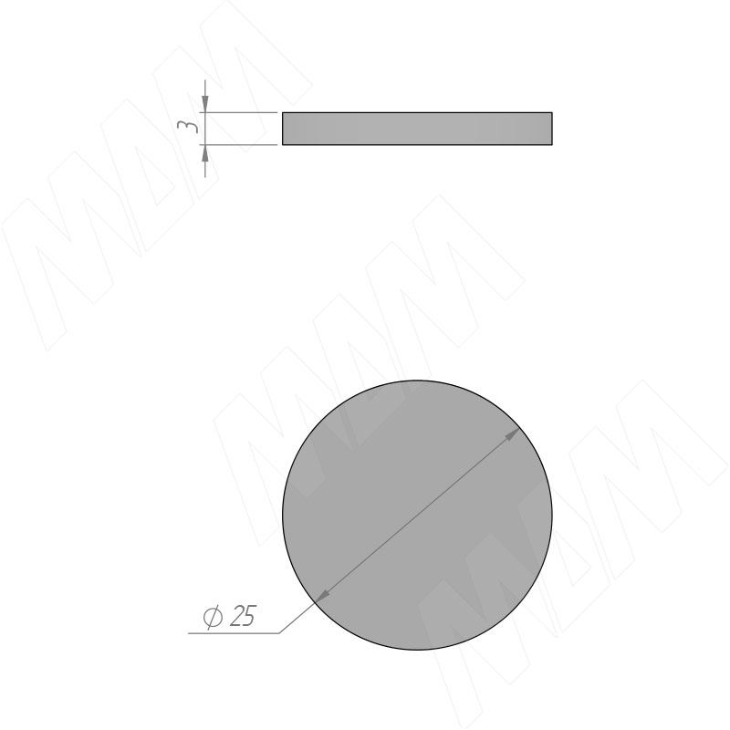 Размеры самоклеящегося круглого подпятника, диаметр 25 мм (артикул HR25)