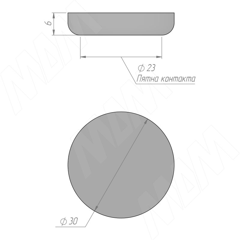 Размеры круглого самоклеящегося подпятника SuperGlide, диаметр 30 мм (артикул HR30-G)