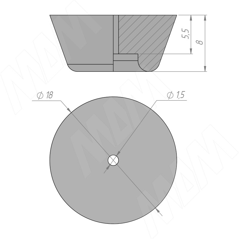 Размеры круглого подпятника D18 мм, h8 мм, под саморез (артикул HR18-8-P)