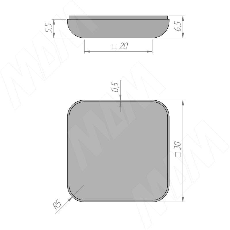 Размеры квадратного самоклеящегося подпятника SuperGlide 30х30 мм (артикул HR-A3030)