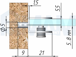 Полкодержатель для стеклянных полок толщиной 5-8 мм, со штоком, никель