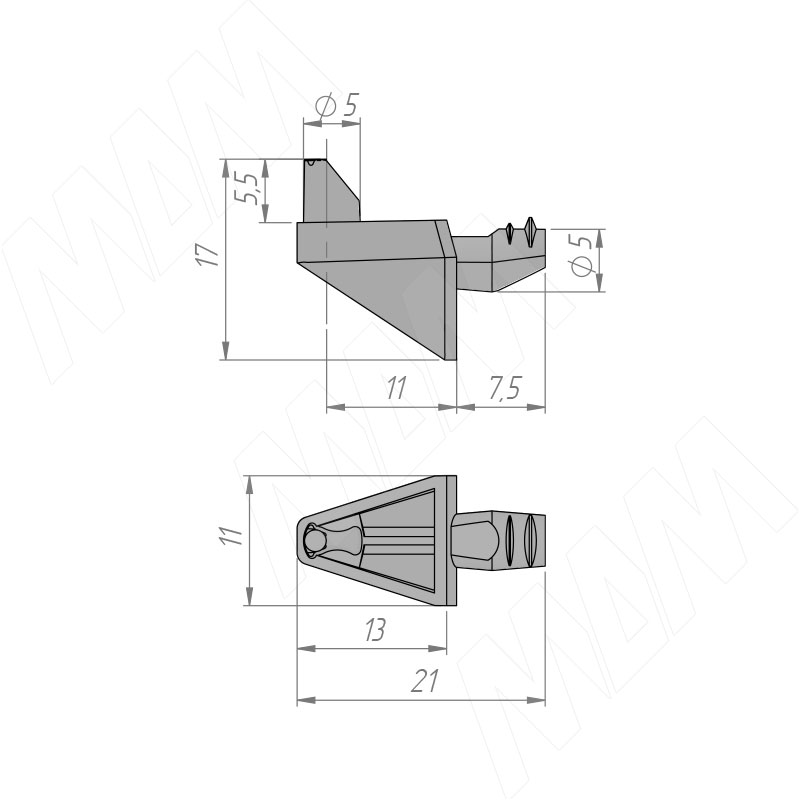 Размеры полкодержателя для деревянных полок с фиксацией (артикул ME66)Установка полкодержателя для деревянных полок с фиксацией (артикул ME66)