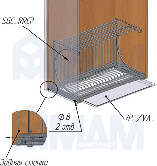 Комплектация: рамка с держателем задней панели и сетка посудосушителя