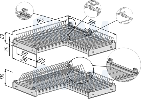 Комплект посудосушителей для углового шкафа 600х600 мм