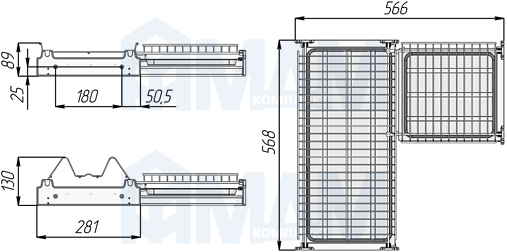 Купить комплект посудосушителей для углового шкафа 600х600 мм оптом и в розницу в городе Москва.