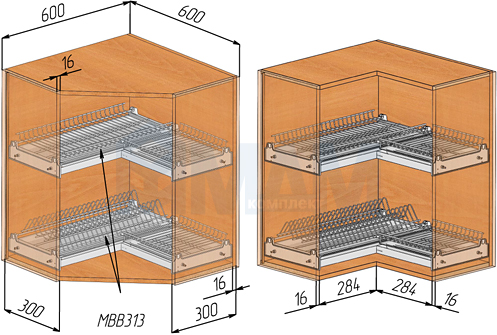 Оставьте свой отзыв о товаре: Комплект посудосушителей для углового шкафа 600х600 мм (MBB313)