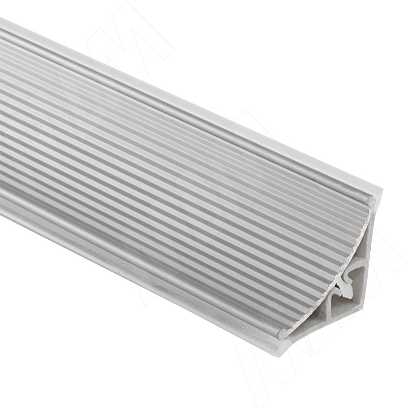 Плинтус алюминиевый треугольный вогнутый L=3м, рифленый, серебро